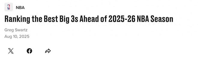 湖勇獲提名!美媒曬現(xiàn)役三巨頭TOP5:小卡哈登壓線入選火箭排第4